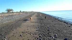 Down the beach, around the point .. Cormorants & grebes ply the waters .. Over head, the terns and the blue-footed boobies spy and dive for small fish … The dogs take it all in .. but mostly, they are just dogs … full of joy and play.