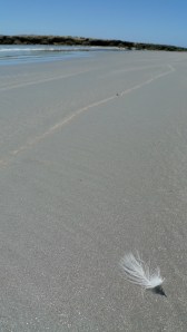 This small gull feather, caught on the afternoon breezes, danced along the shoreline before coming to rest right below my feet. I pondered the bird that had dropped it – all the miles it might have flown. The sand underneath, created by the pummel of waves on unseen corals. the wind ruffled the edges of the feather along with my hair. Small waves echoed their cresting against the dusty cliff faces.