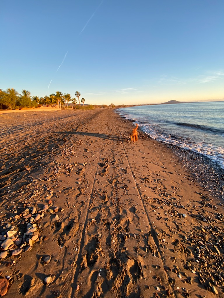 Wintry sunrises set the tone for southern Baja mornings. By wintry, meaning the early temperatures hover in the mid-50s and I may need to put on a sweatshirt for my walk with Loki. My neighbor, Ernst, without fail, slips into the water for his morning swim. He’ll do this even when the water temps drop into the 60s, somewhere in February.